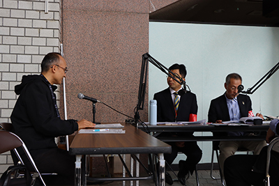 訓練は2部構成で実施し、インターネットを通じたサイマル放送(同時放送)も行いました。近年はスマホでラジオを聴く人も増えているため、多角的な情報伝達の検証を行いました。なお、前日(13日)には市役所屋上に機材を設置し、周辺避難所等での可聴域調査(フィールド調査)も実施済みです。